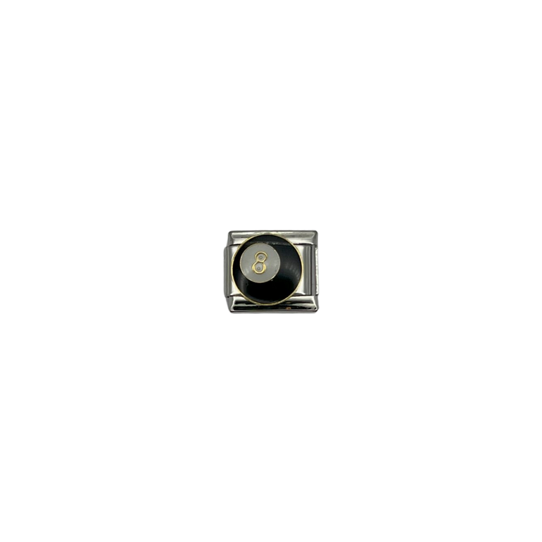 Sink the 8-ball in style with this unique Italian charm! Make your bracelet special and tailor-made with this one-of-a-kind charm. Rock the table and show 'em who's boss! 8-ball, you're up!