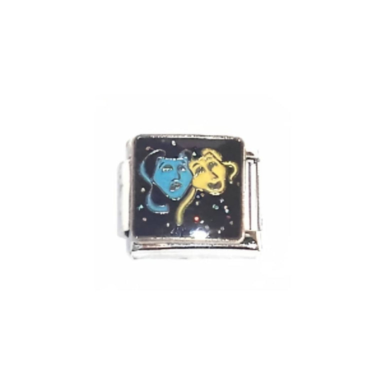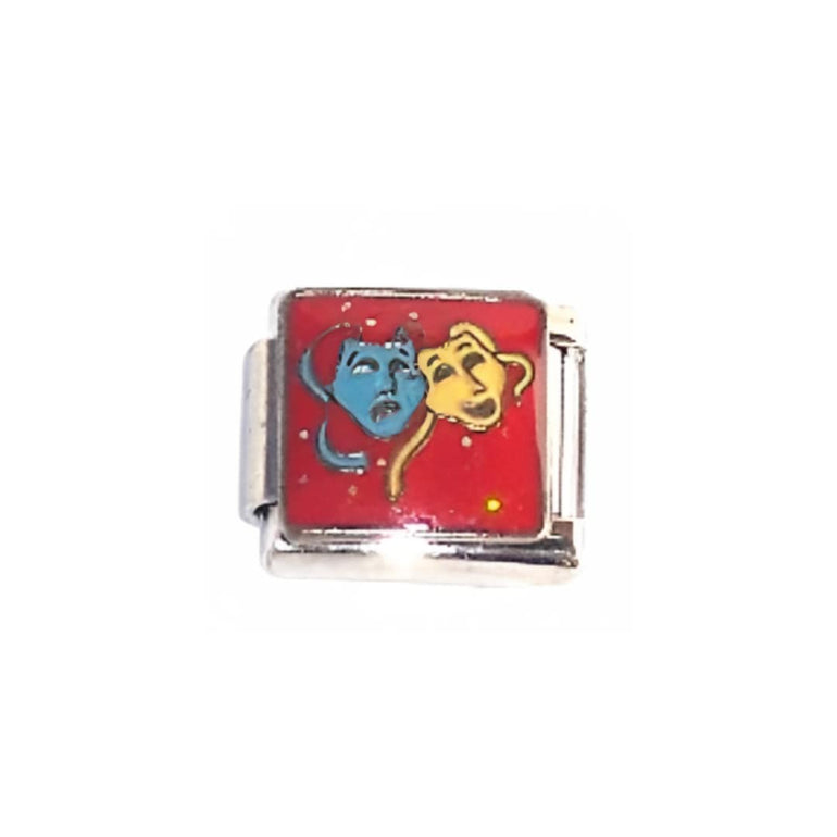Unmask your style with these fun Theatre Masks Italian charms! Showcasing two different masks - who is it? - this piece of jewelry is sure to bring an artistic flair to any outfit. Add a touch of drama to your look and let the guessing game begin!