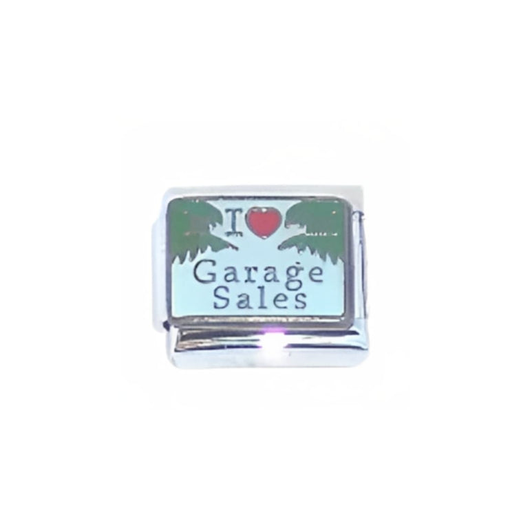 Love bargain-hunting? Get your hands on this I love garage sales Italian charm! Add a touch of retro fun to your wrist - this charm will be the favorite at every outdoor sale!